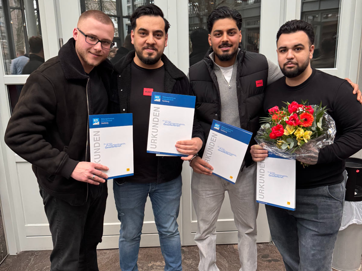 Wir gratulieren Louis, Jaspreet, Basir und Ali herzlich zu ihrem Gesellenbrief und feiern den Abschluss des Kapitels Ausbildung, mit allen vieren voller Stolz. Besonders hervorheben möchten wir, die herausragende Leistung von Basir, der als bester Absolvent des Jahrgangs der Informationselektroniker ausgezeichnet wurde. Wir blicken auf eine Ausbildungszeit mit Spaß sowie tollen Erfolgen und freuen uns, dass drei unserer Absolventen Teil des HANSA PROJEKT Teams bleiben und die Zukunft unserer Unternehmensgruppe mit uns gestalten.